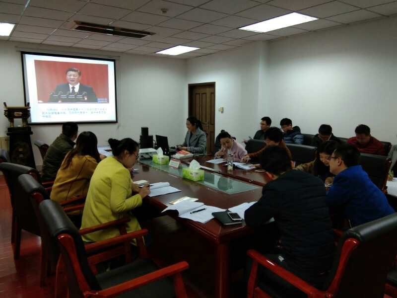 学习中,全体人员观看了视频短片《十分钟解读十九大报告》,认真研读了自行制作的《贯彻落实十九大报告专题辅导材料(PPT)》,发放了《党的十九大报告学习辅导百问》、《习近平谈治国理政》、《中国共产党章程》等书籍,并现场书面答题测试学习效果。党支部宣传委员胡永浩在开场讲话中强调,广大职工,尤其是党员干部要高度重视习近平总书记工作报告的学习。要通过学习,熟知党史、国家发展成果和奋斗目标,更要深刻领会中国特色社会主议理论体系的内涵,要求大家做报告精神的宣讲者、传播者和实践者,以实际行动落实报告精神。不能只埋头工作,不晓国家之事,不知方向。